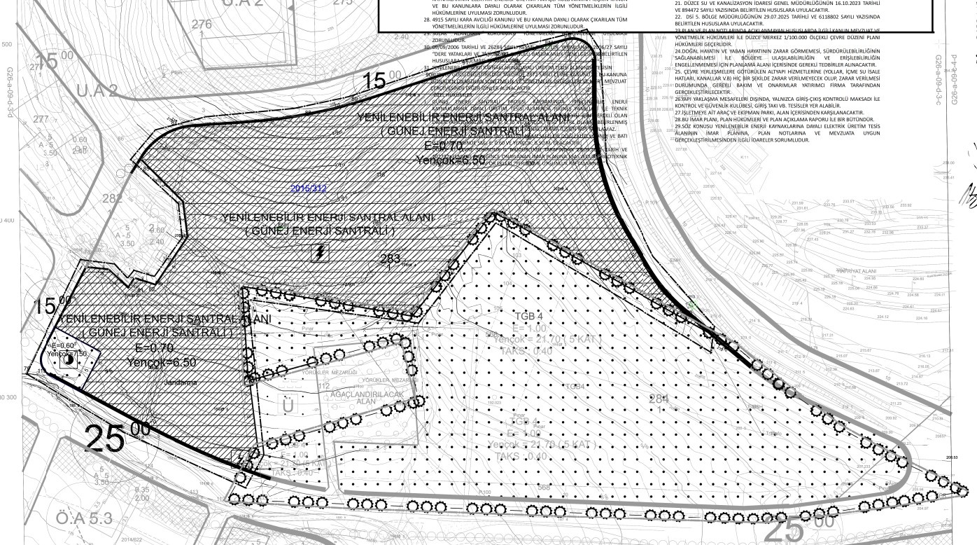 Düzce Üniversitesi tarafından İlimiz Merkez İlçesi Yörükler Mahallesi 283 ada 1 parsel ile Hazineye ait tescil dışı alanlar kapsayan alanlara ilişkin taşınmazlara dari Güneş Enerjisi Santrali Tesis kurulması amacıyla Bakanlığımıza sunulan 1/5.000 ölçekli Nazım İmar Planı değişikliği ile 1/1.000 ölçekli Uygulama İmar Planı değişikliği ve Plan Açıklama Raporları incelenerek 3194 sayılı İmar Kanununun Ek 11. Maddesinin (b) ve (h) bendi çerçevesinde onaylanmıştır.